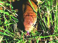 在西班牙马德里地区,有一种绿色的蛇,它也有硬气功大师的本领。这种蛇特别喜欢晒太阳,当它爬出草丛到光滑的马路上晒太阳的时候,通过地面的震动能感知到从远处飞奔而来的载重汽车,它明明知道汽车就要驶到身边,却一动不动,不怕被汽车辗压。这时,它会鼓起肚子里的储气囊,快速地把气体输送到全身,待汽车轮子从它身上压过之后,它却安然无恙。