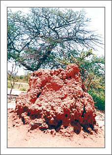 刚来非洲工作时,常驱车行进在乡村之间,土路两侧一座座塔形小土山不时地映入眼帘。它们小的只有篮球大小,一般的高二三米,大的甚至高达四五米。既有单峰耸立的,也有群峰相连的。出于好奇,我停车仔细一看,发现周围有不少白蚁忙碌着从小土山的洞穴进出,原来这些塔形小土山是一座座蚂蚁山!看着成千上万的小蚂蚁以微小的身躯终日衔土不止,筑起如此壮观的“建筑”,着实激发了我的好奇心,想进一步探究这蚂蚁山里面的神奇王国。
