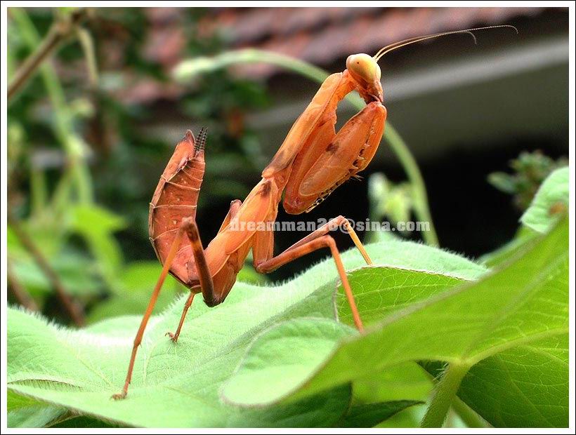 雄螳螂断头交配充满活力 绿色的螳螂长着一对大眼睛,雌性经常坐在树枝上,似乎在打盹,像个“不幸的女性”。其实,雌性分泌少量的特殊的化学物,从老远把雄性引诱过来。而雄性也乐于如此,往往能迅速赶到。雄性知道不知道会有什么样的命运?并不知道。雄性来到雌性跟前,慢慢地小心地活动,突然猛地一跳,蹿上雌性背部,对此感到生气的雌性经常是立即咬掉对方的头。在这种情况下,交配照常进行。而且,断头的雄性完成交配比有头的更充满活力。