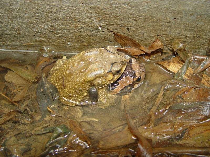 三只蟾蜍一起走 早春,雪刚刚融化。几千只蟾蜍本能地奔赴水中(池塘、水洼、湖泊)产卵。有时要走出好几公里,无法准确说出它们是如何找到路的。还在路上,极度兴奋的雄性已为自己找好伴侣:雄性对视力范围内的移动目标迅速作出反应,向它靠过去,用前爪抓住。如果这个目标是雌性,那么剩下的路程便是成双结对一起走。确切地说,是个大的雌性驮着雄性走。有时,不得不3只一起走。原来,有的雄性不走运,找不到单独的伴侣,只好抓住坐在雌性背上的雄性,无论如何不松开。 在蟾蜍产卵的水体里,水像开锅一样翻腾。一只雌性平均有10只雄性,没有结对的雄性互相扑打,拼命想看看,对方是不是雌性。 交配后,雌性产下的卵像一根长长的线绳缠在水中的植物上。一对对情侣纷纷离开水体,直到下一年春天再回来。2—3周后出现蝌蚪。那些活到性成熟的蟾蜍后来又来到出生的水体繁衍后代。
