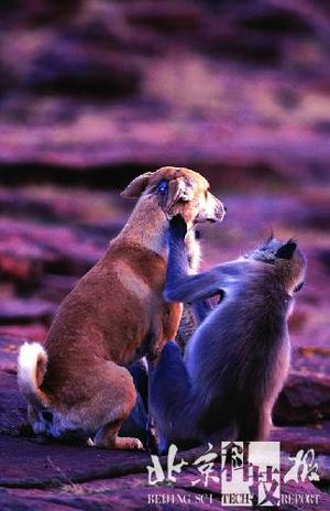 一只小狗被埃及狒狒群体收养并抚养长大