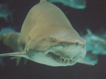 鲨鱼,素有“海中霸王”之称。它身体大,游水快捷,捕食凶狠,牙齿锋利无比,令众鱼望而生畏。在海底世界,鲨鱼能把谁放在眼里?它甚至连巨大的鲸都不怕。然而,有一种不起眼的小硬鳄鱼却能置鲨鱼于死地。