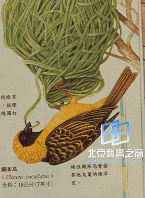 在世上最逗人喜欢的鸟类,可说是非洲文鸟科各种不同的纺织鸟,其属类包括大家熟悉的麻雀在内,牠们所编织的鸟巢,有些确实精致无比,非常美观。筑巢的师傅通常都是雄鸟。鸟巢完工之日也即雄鸟向雌鸟求亲之时。