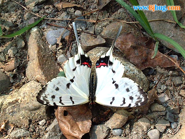 4简要介绍:雌雄异型,雄蝶翅面白色,有黑色斑纹;前后翅外缘有断续的红色;雌蝶翅面* 有黑褐色斑纹。 成虫4--8月间出现,飞行轻缓。