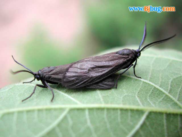 4简要介绍:雄蛾触角栉齿状,雌蛾触角锯齿状。体翅灰褐色,微黄,侧面看略带蓝紫色闪光。