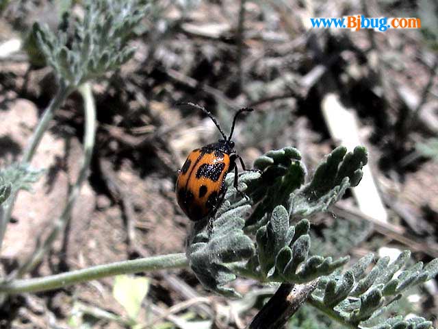 4简要介绍:鞘翅橙红色,具多个黑色带或斑点是这种叶甲的显著特征。