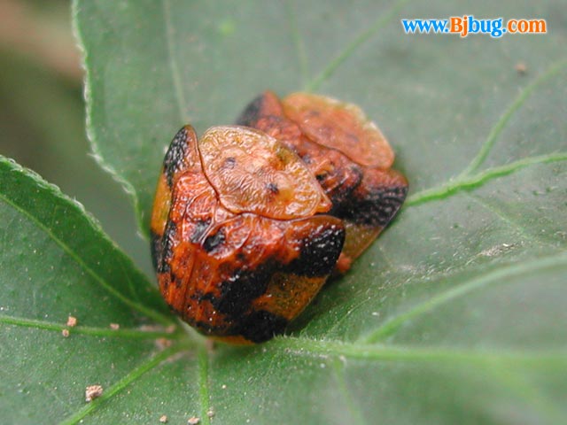 4昆虫种名:未知种类 4所属类别:鞘翅目 铁甲科 龟甲亚科 4拍摄时间:2002.06.18 拍摄地点:金山 4简要介绍:以旋花科植物为食。 4虫体大小:体长15mm 头宽12mm 4区域分布:北京