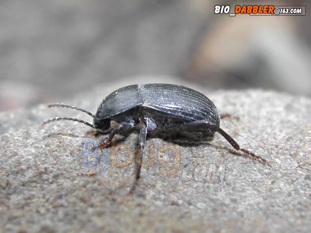 4昆虫种名:未知种类 4所属类别:鞘翅目 拟步甲科 4拍摄时间:2003.03.22 拍摄地点:门头沟 4简要介绍: 4虫体大小:体长15mm 4区域分布:北京