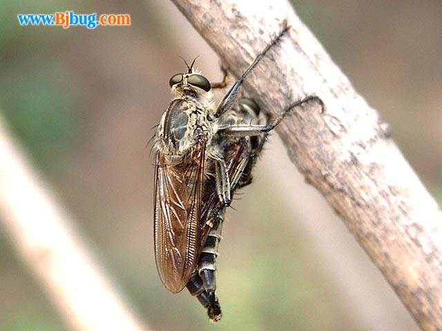 4昆虫种名:未知种类 4所属类别:双翅目 食虫虻科 4拍摄时间:2001.07.08 拍摄地点:玉渊潭 4简要介绍:正在交尾 4虫体大小:体长8--10mm 4区域分布: