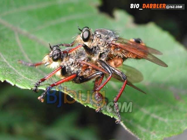 4昆虫种名:未知种类 4所属类别:双翅目 食虫虻科 4拍摄时间:2002.08.12 拍摄地点:灵山 4简要介绍: 4虫体大小:体长10mm,翅展15mm 4区域分布: