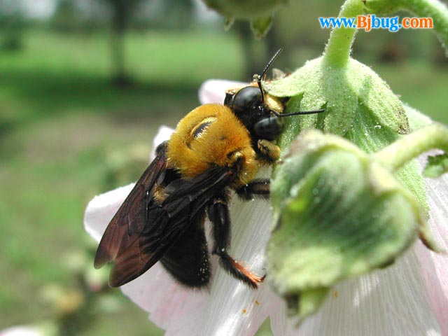 4昆虫种名:未知种类 4所属类别:膜翅目 蜜蜂科 4拍摄时间:2002.06.10 拍摄地点:朝阳区 4简要介绍: 4虫体大小:体长30mm,翅展35mm 4区域分布: