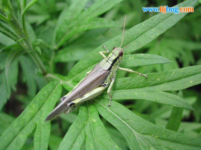4昆虫种名:中华稻蝗 Oxya chinensis (Thunberg) 4所属类别:直翅目 斑腿蝗科 4拍摄时间:2002.07.14 拍摄地点:东灵山 4简要介绍: 4虫体大小:体长40--50mm 4区域分布: