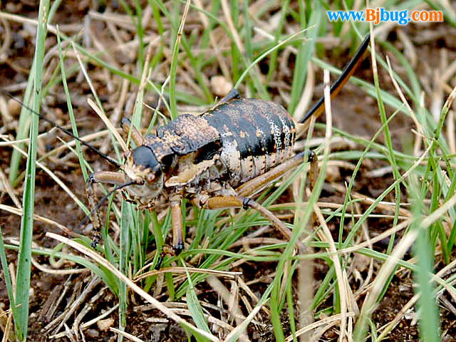 4昆虫种名:懒螽 Deracantha onos (Pallas,1772) 感谢网友蒋澈协助鉴定 4所属类别:直翅目 硕螽科 4拍摄时间:2002.07 拍摄地点:蒙古 4简要介绍: 4虫体大小:体长50mm 4区域分布:北京