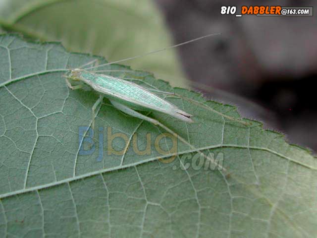 4昆虫种名:未知种类 4所属类别:直翅目 树蟋科 4拍摄时间:2002.09.22 (1)雄虫 (2)雌虫 拍摄地点:金山 4简要介绍: 4虫体大小:体长22mm 4区域分布:
