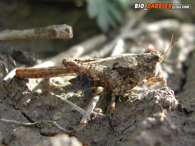 4昆虫种名:未知种类 4所属类别:直翅目 菱蝗科 4拍摄时间:2003.04.13 拍摄地点:圆明园 4简要介绍: 4虫体大小:体长9mm 4区域分布: