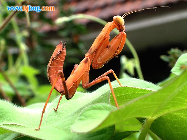 4昆虫种名:未知种类 4所属类别:螳螂目 4拍摄时间:2001.08.04 拍摄地点:门头沟 4简要介绍:螳螂目若虫 4虫体大小:体长20mm 4区域分布: