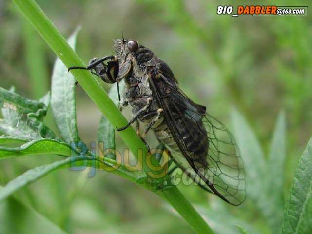 4昆虫种名:未知种类 4所属类别:同翅目 出来 4拍摄时间:2002.08.11 拍摄地点:东灵山 4简要介绍: 4虫体大小:体长35mm 4区域分布: