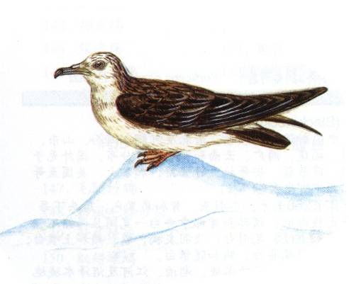 体形与燕鹱相似而大得多,体长约500毫米,体重约550克。前额、头顶前及头、颈侧均白色并缀以褐色纵纹,额部褐纹狭细;上体余部暗褐色,羽端近白;下体纯白色而无斑。腿、趾肉*。