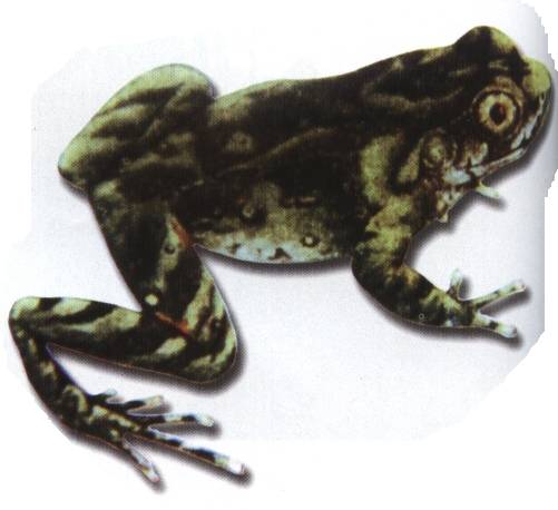 头扁平,宽与长几相等。吻端钝圆,吻棱明显。颊部垂直;鼓膜明显;上颌有齿;舌后端圆;无犁骨齿。四肢细长。前肢指间无蹼;后肢左右跟部相遇,趾细长,趾侧有缘膜,且基部残存蹼迹。皮肤较光滑。背部有小疣粒;须部有一对白色疣粒;胸部两侧各有一胸疣。体背黄褐色,指趾端肉红色,腹面灰褐色。