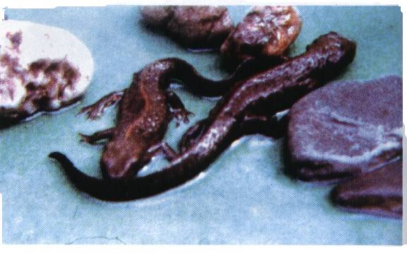 全长才26-150毫米。头部扁平、头顶略凹。头长 大于头宽,吻端钝圆,吻棱明显。鼻孔近吻端;上下颌具细齿;舌小近圆形,两侧缘游离。躯干浑圆。前肢较细长,指端圆钝,基部无践。尾部侧扁,尾梢钝圆,尾长略大干全长之半。皮肤粗糙,体背与体侧布满分散瘰粒。体背与尾侧为褐色;背脊棱暗红;体侧与腹面色浅;腹面有橘红或*块斑。