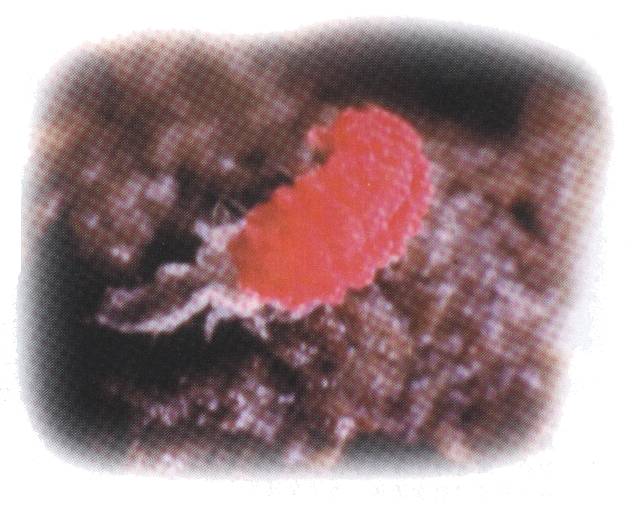 成虫体长2.0-3.5毫米,宽0.9-1.5毫米。全身鲜红色;刚孵化的幼虫橙*;几次脱皮后呈红色;到达成熟期时呈鲜红色、并有紫色光泽。无复眼(或退化),单眼4个;触角短小,共4节,第3、4节愈合。身体各节背面有瘤状突,呈横列;侧板上也有瘤突,各瘤突长有白色短毛。