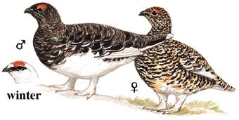 物种特征:描述:矮胖、,中等体型(38厘米)的墩实型松鸡。似柳雷鸟,但夏羽甚为灰暗而冬季眼先黑色而非白色。嘴较细小。两种雷鸟在中国的地理分布相去甚远,在野外不会混淆。 虹膜-深褐;嘴-角质色至黑色;脚-着白色羽。 叫声:粗声的kuh, kuh, kwa-kwa-kwa,或是雄鸟arr, arr猛叫。 分布范围:北半球的苔原冻土带。 分布状况:亚种nadezdae鲜见于新疆极西北部阿尔泰山海拔1300~2000米处的砾石苔原、桧树灌丛及沼泽地。 习性:结小群活动。不惧生。极耐寒,多栖于林线以上。