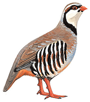 物种特征:描述:中等体型(38厘米),带很重斑纹的鹑类。喉白,下脸部的黑色条纹过眼部和下喉部,与亮红色嘴及肉色眼圈形成对照。上体粉灰,胸皮黄带橘黄,两胁具黑色、栗色横斑及白色条纹。诸亚种存在细微差异,以荒漠中的为最淡。 虹膜-褐色;嘴-红色;脚-红色。 叫声:雄鸟发出一连串越来越高的ka-ka-kaka-kaka-kaka声,紧接着几声带鼻音的咯咯叫,声如 chukara-chukara-chukar。 分布范围:欧洲南部、小亚细亚、喜马拉雅山脉、亚洲中部至蒙古及中国北部。引种英国及其他地区。 分布状况:广泛分布于中国北方,为地方性常见鸟。 习性:成对或成群活动于开阔山区、高原、草原及干旱草地。