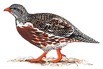 物种特征:描述:中等体型(35厘米),通体灰色,上体、头、颈及尾具黑色及白色细条纹,背及两翼淡染棕褐色,胸白且具宽的矛状栗色特征性条纹。各亚种野外难辨。 虹膜-红褐;嘴-绯红;脚-橙红。 叫声:繁殖期叫声似灰山鹑。受惊时叫声为低哨音,危急时转为尖厉。 分布范围:喜马拉雅山脉、青藏高原至中国中部。 分布状况:常见于海拔2900~5000米林线以上的高山草甸及碎石地带。指名亚种分布在西藏南部;major 分布于四川,callipygia在甘肃南部及四川北部。 习性:常群居;受惊时,两翼极力振动而升空并四散。栖息生境与淡腹雪鸡相同但栖居范围略小。不甚惧生。