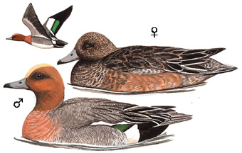物种特征:描述:中等体型(47厘米)的大头鸭。雄鸟特征为头栗色而带皮*冠羽。体羽余部多灰色,两胁有白斑,腹白,尾下覆羽黑色。飞行时白色翅羽与深色飞羽及绿色翼镜成对照。雌鸟通体棕褐或灰褐色,腹白。飞行时浅灰色的翅覆羽与深色的飞羽成对照。下翼灰色-较葡萄胸鸭色深。 虹膜-棕色;嘴-蓝绿色;脚-灰色。 叫声:雄鸟发出悦耳哨笛声whee-oo,雌鸟为短急的鸭叫。 分布范围:古北界;南方越冬。 分布状况:繁殖于中国东北甚或西北。冬季迁至中国北纬35°以南包括台湾及海南的广大地区。地方性常见。 习性:与其他水鸟混群于湖泊、沼泽及河口地带。