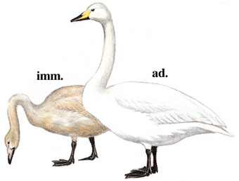 物种特征:描述:体型高大(155厘米)的白色天鹅。嘴黑,嘴基有大片*。*延至上喙侧缘成尖。游水时颈较疣鼻天鹅为直。亚成体羽色较疣鼻天鹅更为单调,嘴色亦淡。比小天鹅大许多。 虹膜-褐色;嘴-黑而基部为黄;脚-黑色。 叫声:飞行时叫声为独特的klo-klo-klo声,但联络叫声如响亮而忧郁的号角声。 分布范围:格陵兰、北欧、亚洲北部,越冬在中欧、中亚及中国。 分布状况:繁殖于北方湖泊的苇地,结群南迁越冬。数量比小天鹅少。 习性:飞行时较疣鼻天鹅静声得多。