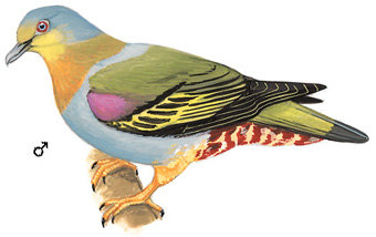物种特征:描述:中等体型(33厘米)的绿鸠。脚黄,特征为上胸的黄橄榄色条带延伸至颈后而与灰色下体及狭窄的灰色后领成反差。尾上偏绿,具宽大的深灰色端斑。 虹膜-外圈粉红,内圈浅蓝;嘴-灰色,蜡膜绿色;脚-*。 叫声:一连串圆润悦耳、抑扬顿挫的哨音似橙胸绿鸠,但更响亮而音低。 分布范围:印度、斯里兰卡、缅甸及印度支那。 分布状况:亚种viridifrons为云南西部及南部(西双版纳)的罕见留鸟。由于栖息生境的丧失及滥猎而数量减少。 习性:栖于半常绿林及次生林,分布至海拔800米。与其他鸽类及犀鸟栖于结实的无花果树。