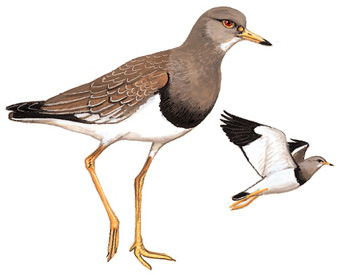 物种特征:描述:体大(35厘米)的亮丽黑、白及灰色麦鸡。头及胸灰色;上背及背褐色;翼尖、胸带及尾部横斑黑色,翼后余部、腰、尾及腹部白色。亚成鸟似成鸟但褐色较浓而无黑色胸带。 虹膜-褐色;嘴-*,端黑;脚-*。 叫声:告警时叫声为响而哀的chee-it, chee-it声,飞行时作尖声的kik。 分布范围:繁殖于中国东北及日本;冬季南迁至印度东北部、东南亚,少量个体到菲律宾。 分布状况:全球性近危(Collar et al., 1994)。繁殖于东北各省至江苏和福建;迁徙经华东及华中,越冬于云南及广东,偶见于台湾。通常不常见。 习性:栖于近水的开阔地带、河滩、稻田及沼泽。