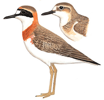 物种特征:描述:中等体型(23厘米)的灰、褐及白色鸻。嘴短。与蒙古沙鸻区别在体型较大,嘴较长较厚,腿较长而偏*。除蒙古沙鸻外,与所有其他越冬鸻类的区别在缺少胸横纹或领环。繁殖羽特征为胸具棕色横纹,脸具黑色斑纹,前额白色。 虹膜-褐色;嘴-黑色;腿-黄灰。 叫声:起飞时作低柔的颤音trrrt。 分布范围:繁殖由土耳其至中东、中亚至蒙古;越冬在非洲沿海、印度、东南亚、马来西亚至澳大利亚。 分布状况:繁殖于新疆西部天山及喀什地区及内蒙古境内黄河拐弯处以北;迁徙经中国全境,少量鸟在台湾、广东及香港沿海越冬。 习性:喜沿海泥滩及沙滩,与其他涉禽尤其是蒙古沙鸻混群。