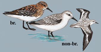 物种特征:描述:体型略小(20厘米)的近灰色涉禽。肩羽明显黑色。比其他滨鹬白,飞行时翼上具白色宽纹;尾中央色暗,两侧白。特征为无后趾。夏季鸟上体赤褐色。 虹膜-深褐;嘴-黑色;脚-黑色。叫声:飞行时发出尖声的cheep cheep cheep或流水般的plit声。 分布范围:全北界。繁殖在北半球,冬季远至澳大利亚及新西兰。 分布状况:甚常见的冬候鸟及过境鸟。为新疆西部、西藏南部、整个东北、贵州及海南的偶见迁徙鸟,但相当数量鸟于华南、东南沿海及台湾的南部越冬。 习性:喜滨海沙滩,极少至泥地。通常随落潮在水边奔跑,同时拣食海潮冲刷出来的小食物。有时独行但多喜群栖。注:亦可归入Crocethia属。