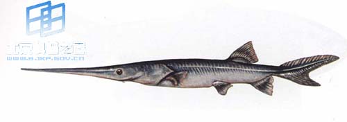 白鲟又叫腊子、象鱼、象鼻、柱鲟鳇、鲟钻子等,体长为2—3米,体重200—300千克,最大的体长可达7.5米。它是体形最大的淡水鱼类之一,所以在四川俗语中有“千斤腊子万斤象”之说。它与中华鲟和达氏鲟的主要区别是体上及头部均-,没有骨板被覆,上下颌上具有细牙齿。它的体形也很奇特,身体呈长梭形,前部平扁,后部稍侧扁。头部的长度超过体长的一半。吻部长而尖,像一把锋利的长剑,伸出于头的前端。吻的两侧有宽而柔软的皮膜,腹面有一对短而细的吻须。口大,位于头的腹面,呈马蹄形,能伸缩。鳃孔也较大,没有鳃盖骨,但眼睛却很小。眼睛后面有喷水孔。体表光滑无鳞,或仅有散布身体各处的退化鳞片痕迹。尾鳍为歪形,上叶比下叶长。头部,体背和尾鳍都为暗灰色,腹部白色。整个头部皮膜表面密布着许多梅花斑状的神经细胞组织。皮肤光滑柔软,身体两侧的侧线上有许多像小树杈一样的分枝。鳔大,具1室。