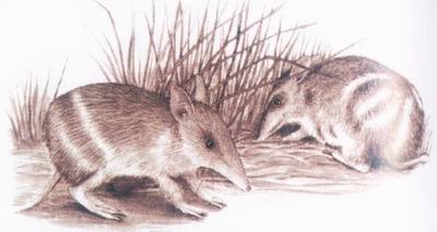 世界上所有的有袋类动物全部生活在澳大利亚、塔斯马尼亚及新几内亚和邻近岛屿。西、东袋狸也不例外,西袋狸分布在澳大利亚西部大沙,吉布森,维多利亚三大沙漠以西.东袋狸分布在澳大利亚东部的昆士兰州至维多利亚州.西袋狸.东袋狸的体型相似,相貌一样,体长0.24-0.35米,尾巴短,只有0.06米左右,脸尖耳阔,眼睛小而圆,从头部看很象老鼠,它们后肢发达,与其他有袋类一样是靠后肢跳跃前行.它们的毛色棕褐,在身体后半部有数量不等的白色条纹,从条纹上看很容易与其他袋狸进行区分.它们的雌性有8个乳头,每胎产2-6仔。