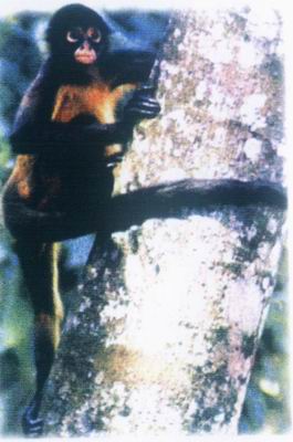长毛蜘蛛猴分布于南美洲西北部及巴西中部,它因背部披着黑色长毛而得名。它的腹部毛色灰白,与背部黑色长毛形成鲜明对比。头部的毛有的是白色,也有黄褐色和金色的,面部无毛,强烈兴奋时,会面红耳赤。它的体长0.46~0.63 m,尾长0.65~0.8 m,体重约10 kg。它的尾巴有很强的卷握能力。
