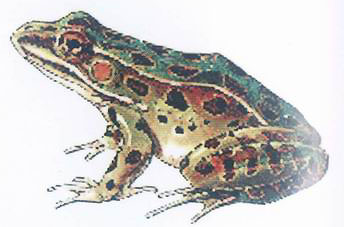 从加拿大西北部的艾伯塔省到美国内华达州的南部,曾广泛分布着一种奇特的蛙类──豹蛙。豹蛙的体长在0.05~0.13 m,美国品种呈绿色,加拿大种呈褐色,身上长着黑色斑点,通常黑色的斑点外围环绕着一条白色的纹线,由于身上的斑点花纹非常象豹子,因而得名。