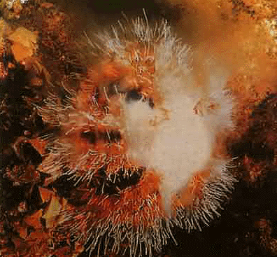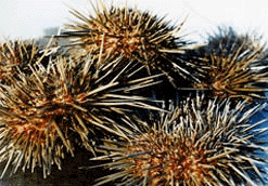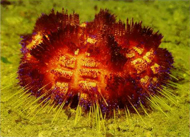 海胆的体型多为圆球形,身体表面长满了棘刺。死去的海胆只留下一个石灰质的空壳,可以看到扇形的胆壳上有明显的五道辐射痕迹。海胆浑身是刺,有的种类的棘刺上还有毒腺。海胆运动时只能靠调整棘刺慢慢移动位置。所以,海胆的活动范围很小,只能在洞穴附近觅食。