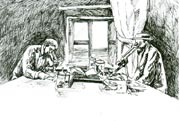 在“挑战者”号船上实验室,科学家在显微镜下观察微生物