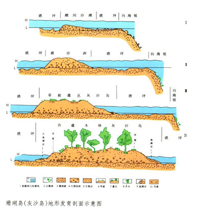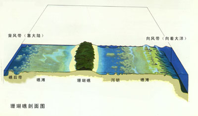 珊瑚礁岛,它是分布在海洋中水深较浅地方的一种石灰石(化学名字叫碳酸钙)堆积物,是由海洋中能分泌石灰石的多种动植物在生长过程中形成的。这类动植物,人们常称它们为造礁生物。