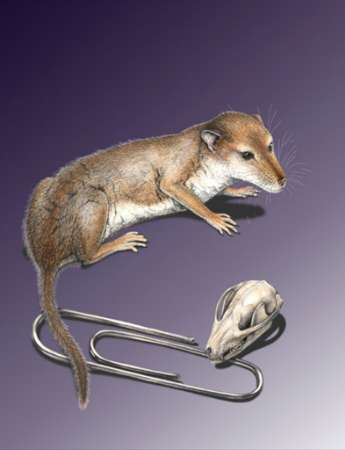 美国匹兹堡自然历史科学博物馆的科学家在2001年5月底出版的《科学》杂志上发表了一篇研究报告,报告中称这种中生代体形最小的哺乳动物名为Hadrocodium,体重仅有2克,而它的大脑与其他动物相比却要大得多。可以说它是一种在恐龙时代依靠自己智慧维持生存的最小动物。