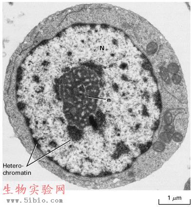 图12-1 细胞核的结构,n为核仁,N为常染色质