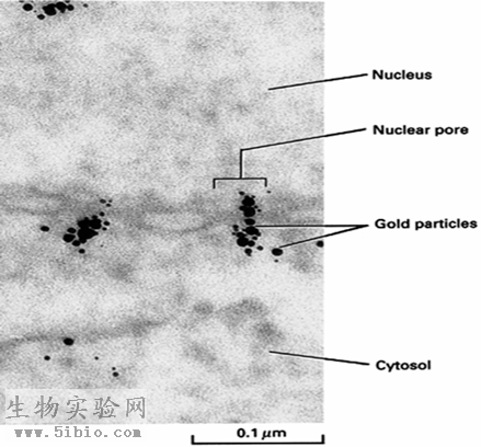 图12-7 金标记的核质素穿越核孔
