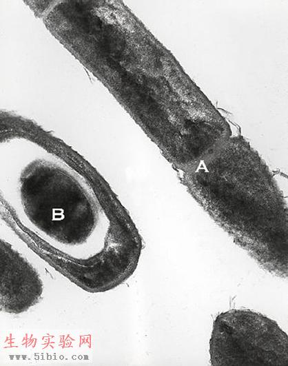 图3-16 Bacillus anthracis的芽孢(B) 图片来自http://www.microbelibrary.org