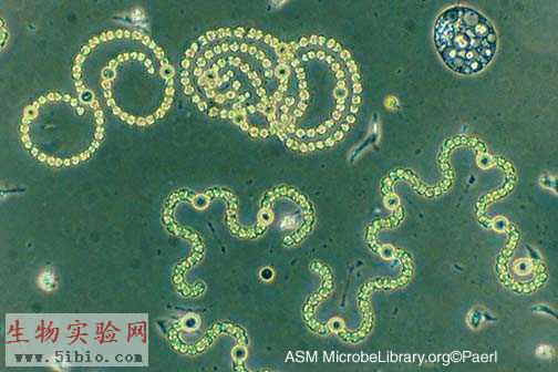 图3-20 项圈藻Anabaena Cyanobacteria 图片来自 http://www.microbelibrary.org