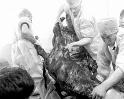 经专家现场检测,该转基因体细胞克隆牛体重55公斤,心律68次/分钟,身长85厘米,高95厘米,胸围65厘米,各项生理指标均正常。专家们介绍说,该牛犊抗疯牛病基因的表达和抗病效果,还有待进一步检测验证。(于健、孙贵山、陈太安)