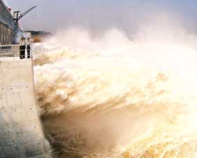 ▲6月21日,长江流域进入主汛期,以每秒26000立方米流量通过三峡大坝。为确保重要目标安全,武警官兵在大坝上进行巡查。