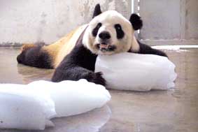 ▲连日来,摄氏39度的高温是西安50年不遇的,生活在秦岭野生动物园的“秦秦”热得受不了。为了使它安全度过高温酷暑,工作人员为它造了一间冰房子,它才舒服得可以在里面玩耍。
