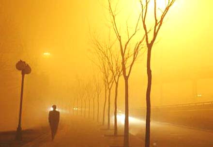 雾是一种出现在秋冬季节的天气现象。它是悬浮于近地面层中的大量水滴或冰晶,使水平能见度小1公里的现象。雾的形成有两个基本条件,一是近地面空气中的水蒸气含量充沛,二是地面气温低。北京的冬季和初春,由于北方来的冷空气与南方来的暖湿空气经常在华北交绥,在其交界处极易出现雪雨雾过后蒙蒙的天气。